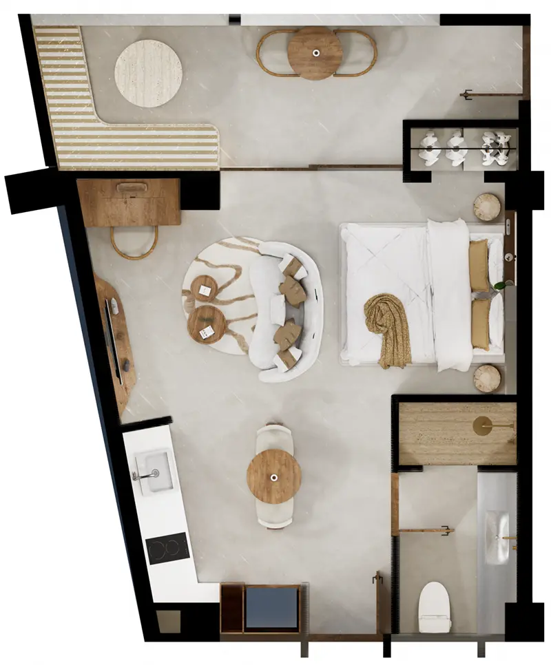 Escape to serenity and sophistication in this 45 sqm mountain-view studio, designed for those who seek peace, privacy, and natural beauty. Thoughtfully crafted with an open-plan layout, this elegant residence features a comfortable living area, a fully equipped modern kitchen, and expansive windows that frame panoramic views of Lombok’s lush mountain landscapes. Whether you're looking for a luxury getaway, along-term residence, or a high-performing rental investment, this studio is the perfect blend of modern comfort and tropical charm.